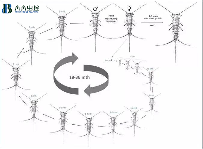 2.衣魚從幼蟲到成蟲約需4~6個月,衣魚的發育為半變態,幼蟲到成蟲要蛻皮8次,成蟲期也仍會脫皮,壽命可長達2~8年。